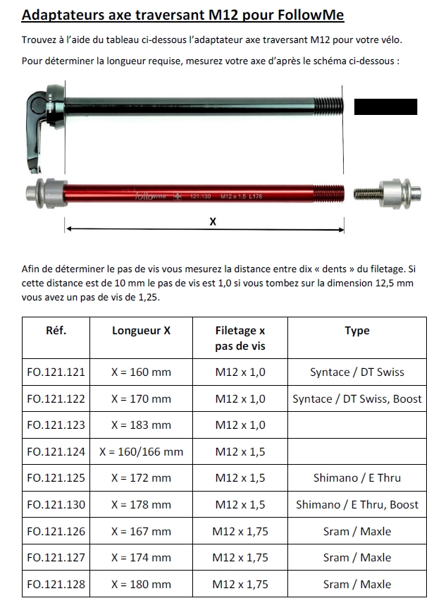 La dimension "148" ne décrit pas la longueur de l'axe traversant. Merci de bien vouloir déterminer la longueur de l'adaptateur selon la dimension "X" décrit dans le tableau.